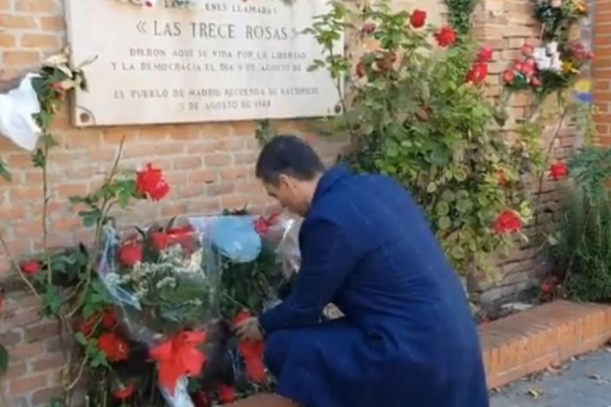 Sánchez lleva flores al lugar donde asesinaron a las Trece Rosas