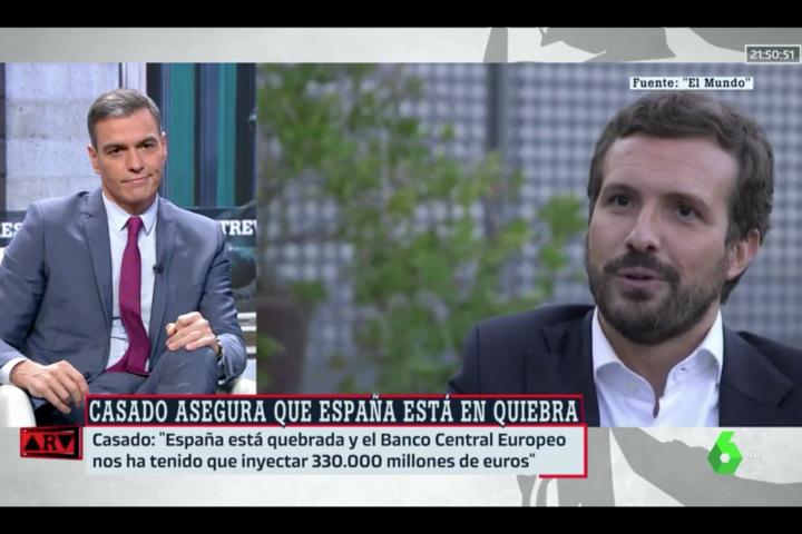 Pablo Casado dijo hace unos días en una entrevista a El Mundo que “España está quebrada”. Este jueves en laSexta, el presidente del Gobierno, Pedro Sánchez, ha escuchado las palabras del líder de la oposición en su entrevista con Antonio García Ferreras y no ha podido evitar torcer el gesto en señal de desaprobación.