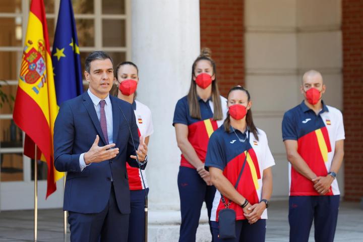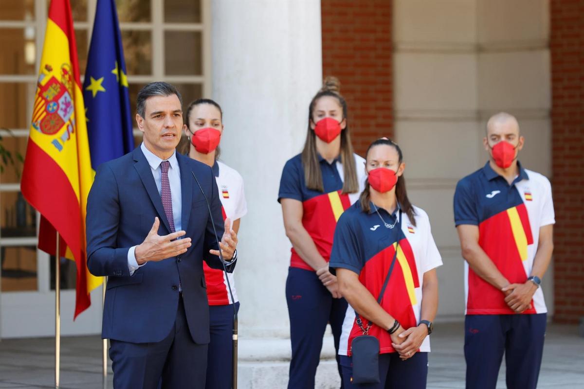 El jefe del Ejecutivo ha agradecido a los deportistas que hayan sido “testimonio de superación, de esfuerzo y de resistencia” durante la pandemia. Los deportistas han estado encabezados por el presidente del Comité Olímpico Español (COE), Alejandro Blanco.