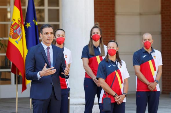 Sánchez confesó el “honor” que supone recibir “a la élite del deporte español”, y les trasladó “un agradecimiento, un compromiso, una petición y un deseo”. “El agradecimiento es por todo el esfuerzo y ejemplo de resistencia, de superación de obstáculos que habéis vivido a lo largo de estos meses de pandemia. Son unos Juegos Olímpicos que hasta hace muy poco eran una incógnita; es evidente que la incertidumbre que existía supuso un desafío desde el punto de vista psicológico y mental para prepararos lo mejor posible. Habéis sido testimonio de superación, de esfuerzo, de resistencia, de mirar las cosas positivas para salir adelante”, ha remachado el jefe del Ejecutivo.