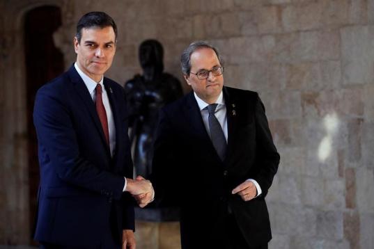 La reunión entre el presidente catalán, Quim Torra, y el jefe del Gobierno, Pedro Sánchez, en el Palau de la Generalitat ha comenzado poco después de las 12.00 horas.