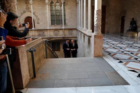 En la galería gótica del Palau, ambos han vuelto a protagonizar un apretón de manos ante los medios gráficos, antes de entrar en el despacho presidencial para dar inicio a la reunión.