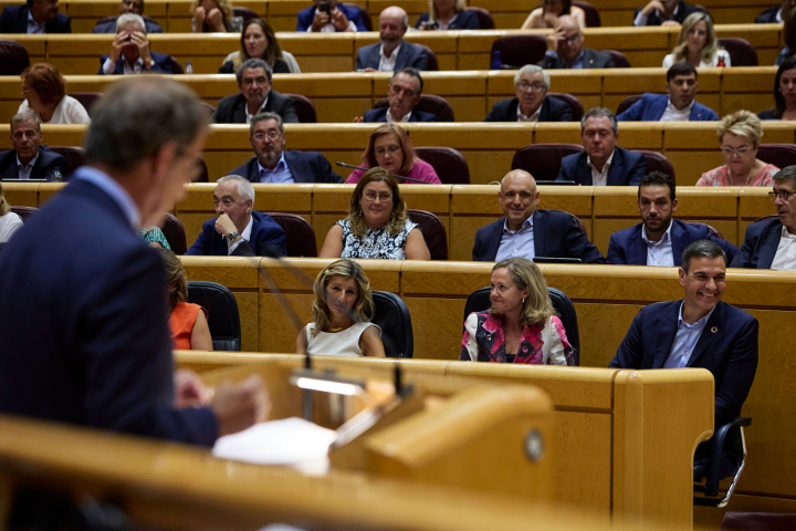 El presidente confía en el tiempo que le queda para las elecciones generales, aunque de por medio están las autonómicas de mayo. Mientras Sánchez avanzaba, lo hacían también las frentes perladas de sudor de los senadores y los abanicos en la tribuna. Los 27 grados pesaban.