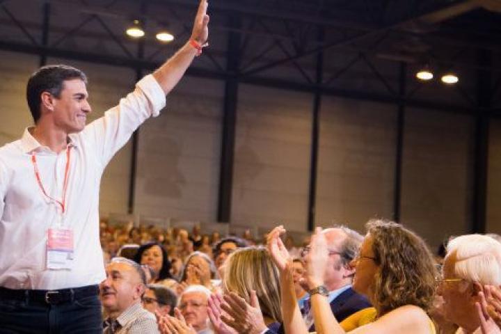 Aplausos, gritos, fervor. El líder del PSOE, Pedro Sánchez, ha puesto este domingo "rumbo a La Moncloa" y ha avanzando que va a trabajar "sin descanso" para buscar una "mayoría parlamentaria que acabe con esta etapa negra del Gobierno del PP", apelando directamente a los desilusionados del 15-M.