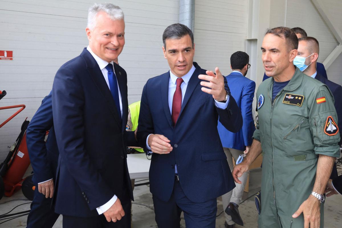 Pedro Sánchez y el presidente de Lituania, Gitanas Nauseda, el pasado julio, durante una visita del mandatario español a la base de Siauliai. PETRAS MALUKAS via Getty Images