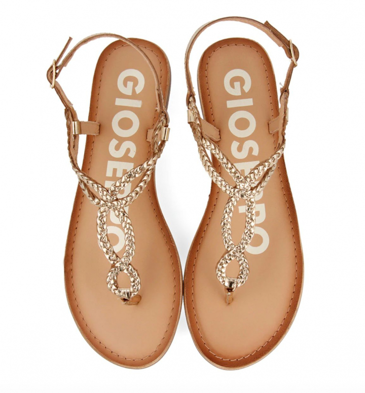 Este modelo plano de Gioseppo con tiras trenzadas de piel en color oro son perfectas para las noches de verano. Funcionan tanto con vestidos como con un pantalón palazzo o una bermuda. Puedes comprarlas en El Corte Inglés por 34,95 euros.