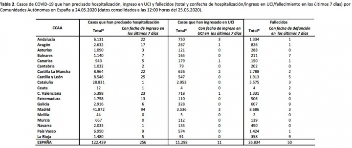 Sanidad añade que en cuanto a las cifras totales de muertos, de ingresos en UCI y de hospitalizados “se está realizando una validación individualiza de los casos, por lo que puede haber discrepancias respeto a la notificación agregada de días previos”.
