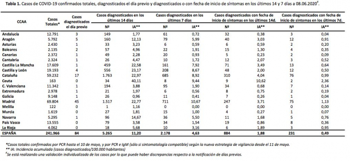 El número de nuevos contagios sí ha subido notablemente desde el lunes (48 ayer, 84 hoy), mientras que el conteo de todos los casos positivos por PCR se eleva hasta los 241.966 (249 más de los reconocidos el día anterior).