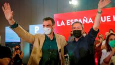 El presidente del Gobierno, Pedro Sánchez (i) conversa co el presidente del Consejo General del Poder Judicial (CGPJ), Carlos Lesmes (c), y la ministra deJusticia, Pilar Llop, antes del inicio del acto de homenaje de estado a las ví...