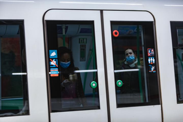 Pasajeros en el Metro de Madrid, con las mascarillas puestas, en una foto de archivoDavid Benito via Getty Images