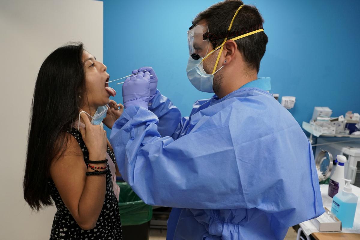 Un sanitario realiza una prueba PCR en Madrid.Juan Medina / Reuters