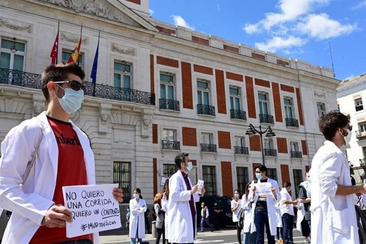 Con pancartas como “La Sanidad no se vende, se defiende” y “No quiero una corrida, quiero un contrato”, se han concentrado en ciudades como Madrid, Barcelona, Valencia y Santiago, entre otras, convocados por Médicos Unidos por sus Derechos.