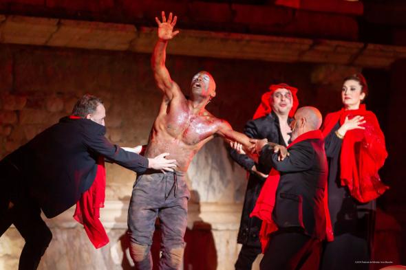Una representación llena de proyecciones, masas de gentes, caballos, antidisturbios, sacerdotes, personas simulando bacanales, y toda una serie de acciones y composiciones de imágenes bien medidas para el grandioso espacio en el que se representa y recalará en noviembre el Teatro de la Maestranza con Gregory Kunde y Nancy Fabiola Herrera. Un buen ejemplo de las capacidades y la calidad del director de escena de esta producción. Sin duda, gran responsable de los muchos y largos aplausos que recibe todo el equipo artístico al final del espectáculo. El problema está en que se quedan en ilustraciones de una música y en el ambiente que rodea a esta desgraciada y falsa historia de amor. Donde se muestra cómo el deseo nos pierde y pierde todo lo que somos y a todos los que queremos. Cómo la satisfacción de los mismos pierde a los seres humanos.