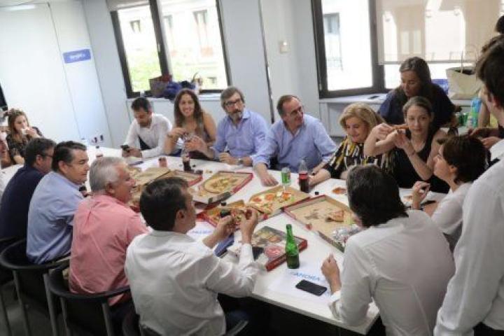 Santamaría y su equipo 'contraprograman' la comida de Casado con unas pizzas