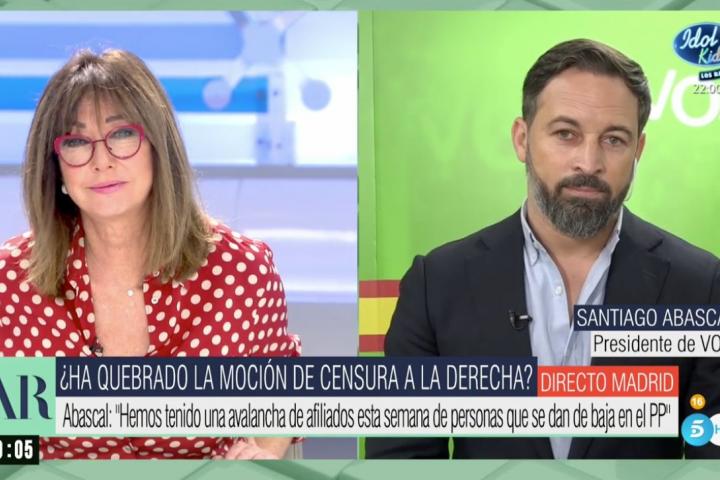 El presidente de Vox ha rechazado este lunes la posibilidad de volver a acercar posturas con Casado, con quien mantenía amistad. ”¿Es posible una reconciliación?”, le ha preguntado Ana Rosa Quintana en una entrevista en directo en Telecinco. “No voy a dar respuestas que parezcan del corazón”, ha respondido.