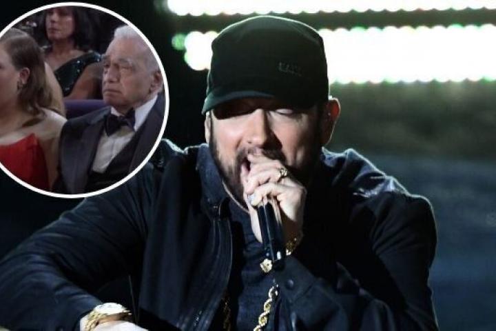 Fue sin duda uno de los momentazos de la ceremonia. La actuación del rapero es ya historia de los Oscar: por lo inesperado, por cómo se volcó el público y por este momento. Martin Scorsese aprovechó la actuación para un descanso.