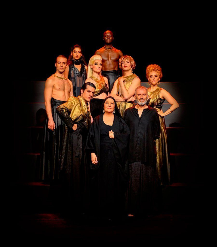 De entre la oscuridad, aparecen varios cuerpos que ocupan la grada. Un hombre joven, vestido de mujer, que representa a Nerón, canta el aria "Pur ti miro, pur ti godo" de Monteverdi en "La coronación de Popea". Aparece Petronio en lo alto de la escena bajo la luz de un foco y dice: