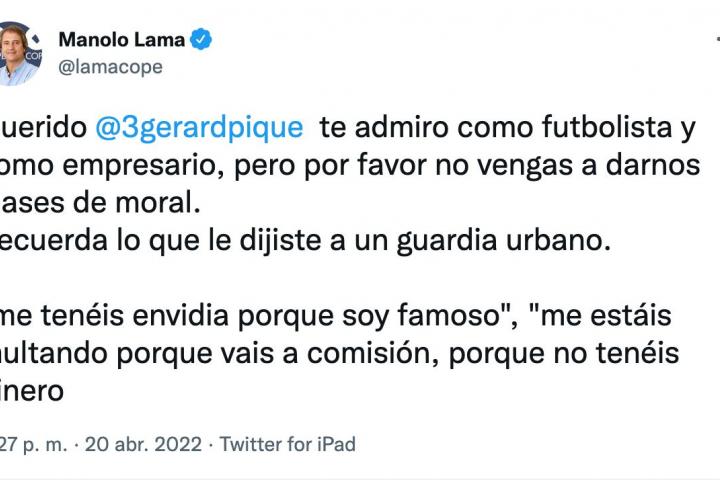Se arma un importante lío con la respuesta de Piqué a este tuit de Manolo Lama