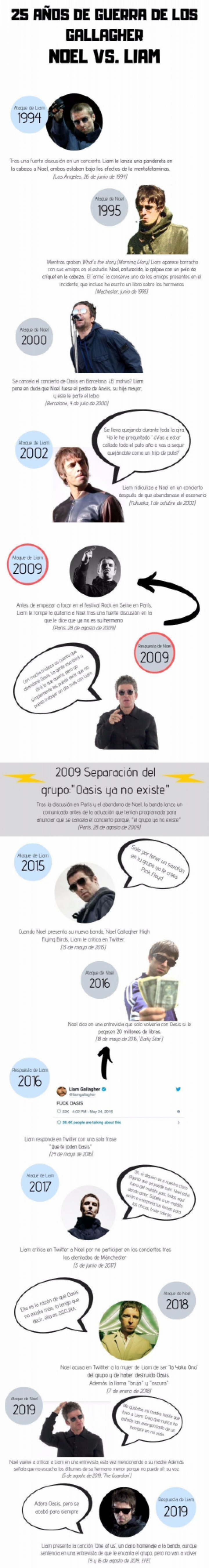 Esta es una cronología simplificada de dos hermanos que podrían ser los Caín y Abel del britpop de los 90.