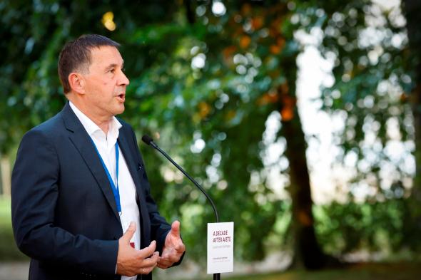 En este aniversario, la primera década en paz, Arnaldo Otegui, jefe de la izquierda abertzale y dirigente de EH-Bildu, leyó el pasado lunes 18 una ‘declaración solemne’ en San Sebastián: “Queremos trasladarles (a las víctimas) que sentimos su dolor y afirmamos que nunca debería haberse producido. A nadie puede satisfacer que aquello sucediera. No se debería haber prolongado tanto en el tiempo (…) Desgraciadamente el pasado no tiene remedio. Nada de lo que digamos puede deshacer el daño causado. Pero estamos convencidos de que es posible aliviarlo desde el respeto y la memoria. Sentimos enormemente su sufrimiento y nos comprometemos a mitigarlo”.