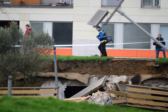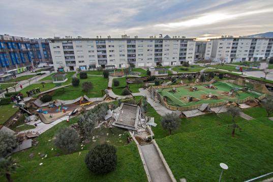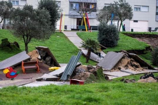 El parque infantil y una pequeña pista deportiva, que estaban anexos, se han hundido y el terreno ha caído sobre el aparcamiento subterráneo que pertenece a la urbanización de pisos que hay en esa zona de la ciudad.