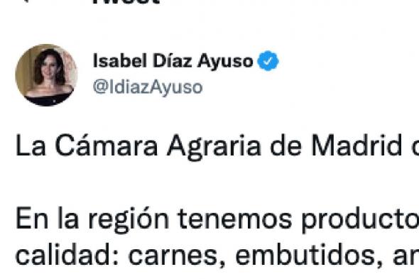 Isabel Díaz Ayuso, presidenta de la Comunidad de Madrid, ha provocado sin quererlo un enorme alboroto en Twitter con un mensaje en el que trataba de sacar pecho de la calidad de los productos alimentarios de la región.