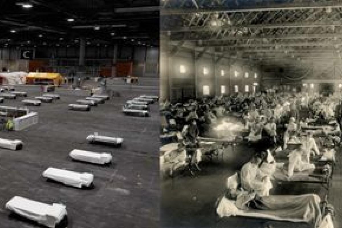 Al igual que hace algo más de cien años, ha sido preciso construir o habilitar nuevos espacios de atención sanitaria, movilizar personal y equipamiento entre países o internamente, para atender un gran número de personas enfermas en un corto espacio de tiempo. También ha sido común la imposibilidad de atender todas las necesidades o de poder enterrar a la velocidad que se producían las muertes.