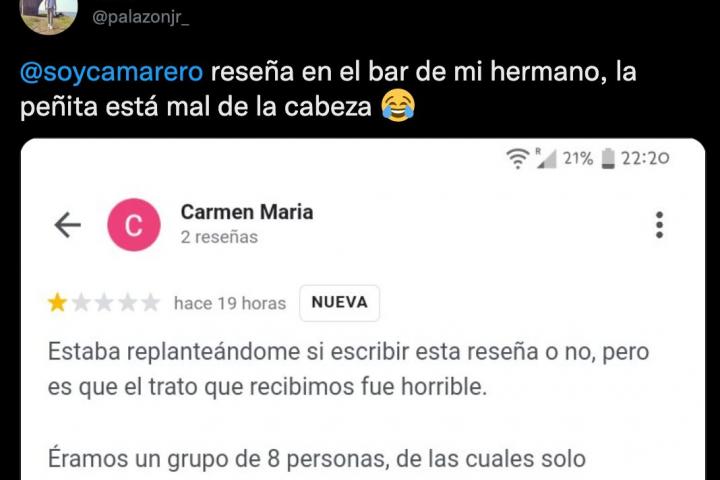 El usuario de Twitter @palazonjr_ ha publicado una de esas que prometen causar furor. Citando a la cuenta encargada de publicar contenido relacionado con el mundo de la hostelería, @soycamarero, ha escrito: “Reseña en el bar de mi hermano, la peñita está mal de la cabeza”.