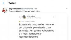 “El camarero viene corriendo cabreado preguntando si no íbamos a dejar propina”, indica antes de añadir: “Marbella, el nuevo Ibiza, engañabobos everywhere”.