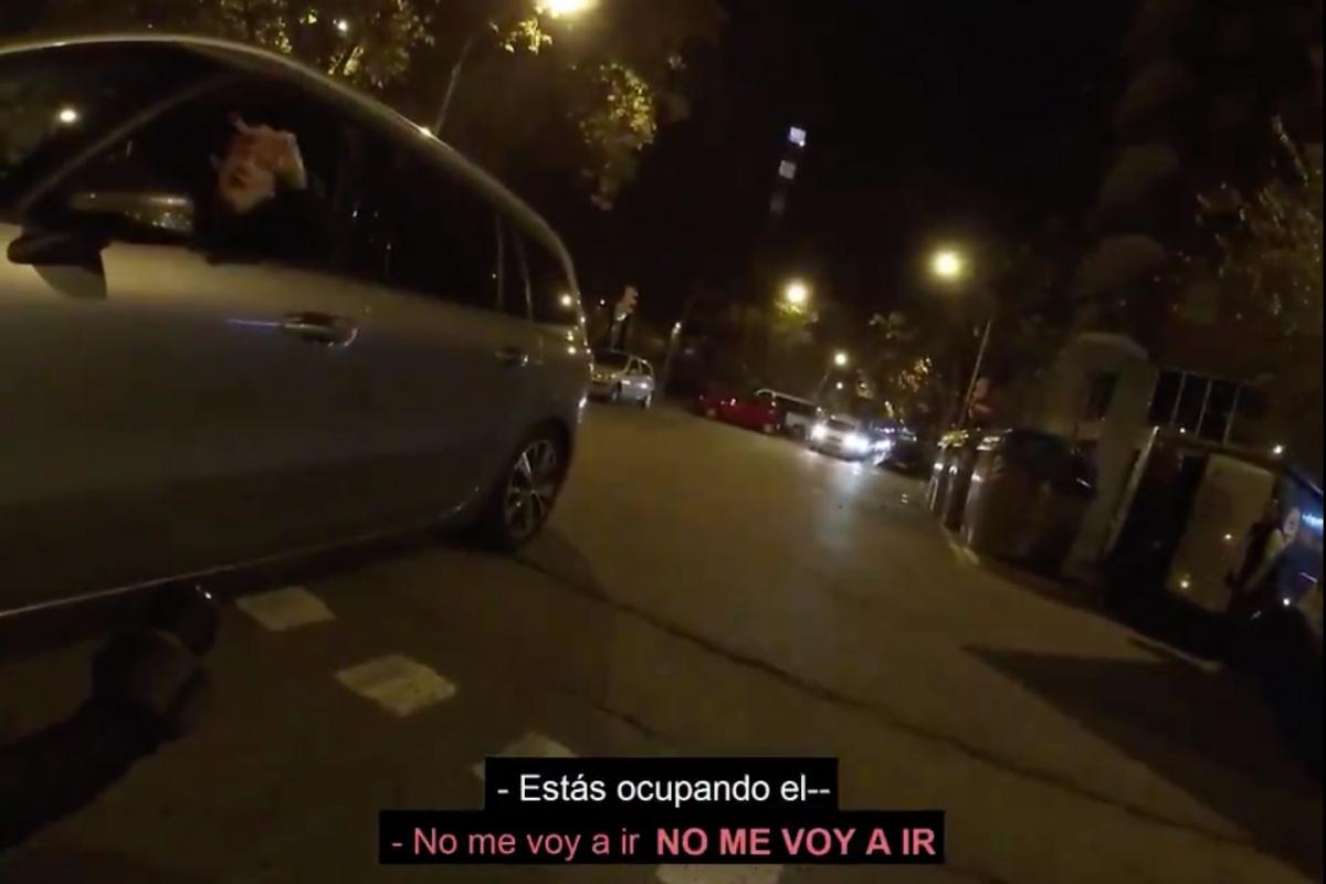 Pero la reacción del hombre del vehículo es el delirio absoluto: “No me voy a ir. No me voy a ir. No me voy a ir. Porque estoy desorientado, soy mayor, soy tonto del culo. Me han dado por culo. Me han dado por culo. Dios mío. Entiéndelo. Ay dios miooooo. Virgen santa”.