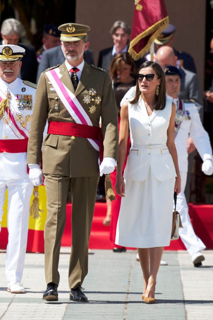 La reina Letizia presidió este miércoles en Madrid junto a Felipe VI la entrega de los Reales Despachos en la Academia Central de Defensa, y los focos volvieron a centrarse en ella. Esta vez por una gafas de sol de montura cat-eye de Carolina Herrera, que han abierto el debate sobre si se ha saltado el protocolo o no.