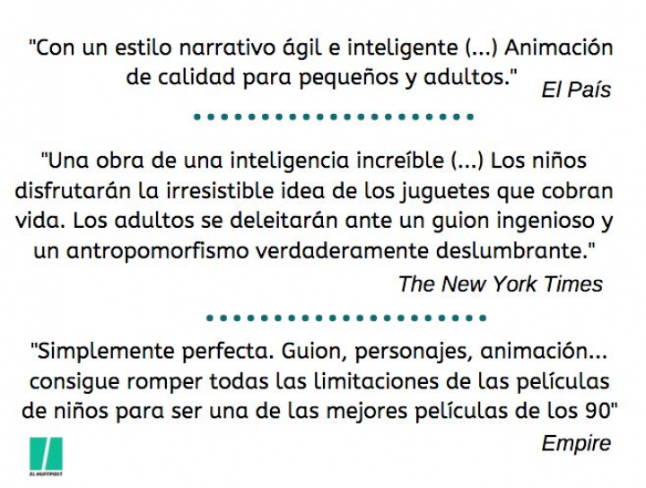 Aquel logro quedó eclipsado por todo lo que vino después. Hoy Toy Story es el 18º título de Pixar con más recaudación en España, pero si no llega a ser por ella no habría venido todo lo demás. “Fue el pistoletazo de salida de su éxito. Ahí lograron cambiar la industria de la animación, conjugar una trama que enganchara a los niños al ver a los juguetes cobrar vida y también a los adultos con el temor de Woody a ser sustituido por Buzz”, cuenta a El HuffPost Doc Pastor, autor del ensayo ¡Hasta el infinito y más allá!: La historia de Pixar a través de sus películas.