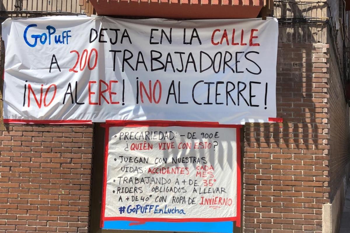 Pero no es la única. Otras como Getir o Gorillas también han anunciado despidos, como adelantaba el diario Bussines Insider este lunes. Ese mismo día, a modo de pistoletazo de salida al conflicto, los trabajadores de Gopuff colocaron una gran pancarta en la fachada de la tienda que tiene la empresa en la esquina de la Calle Ponciano, muy cerca de la parada de metro Noviciado. En ella se expone el rechazo al ERE y se denuncian las condiciones de trabajo.