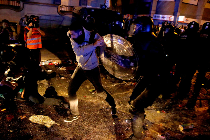 A última hora de la tarde, miles de manifestantes se han reunido frente a los diversos edificios gubernamentales. Pronto, el ambiente de protesta se ha convertido en violencia y el paisaje se ha poblado de barricadas, fogatas y una lluvia de objetos contundentes entre duras cargas policiales. La escena se ha repetido en varias ciudades durante varias horas, pero ha sido especialmente grave en Barcelona.