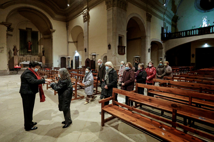 A la celebración de la lectura de este sábado en la población leridana de Arbeca, conocida por la aceituna arbequina, acuden media docena de feligreses a pesar de que a las 19 horas la oscuridad y el frío del silencioso pueblo no son el mayor estímulo para salir de casa.