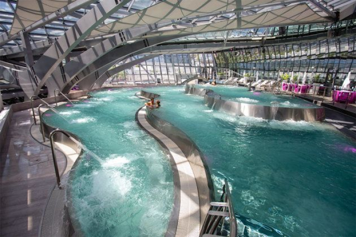 Quienes busquen una experiencia aún más exclusiva pueden optar por Inúu, un espacio termal ubicado en el mismo edificio que Caldea y en el que no se admite a menores de 16 años. Cuenta con tres lagunas interiores, laguna exterior, camas de burbujas, surtidores de diferentes presiones... No falta una zona de hammam, una cueva de sal, camas calientes, cabinas de tratamiento y un gimnasio.