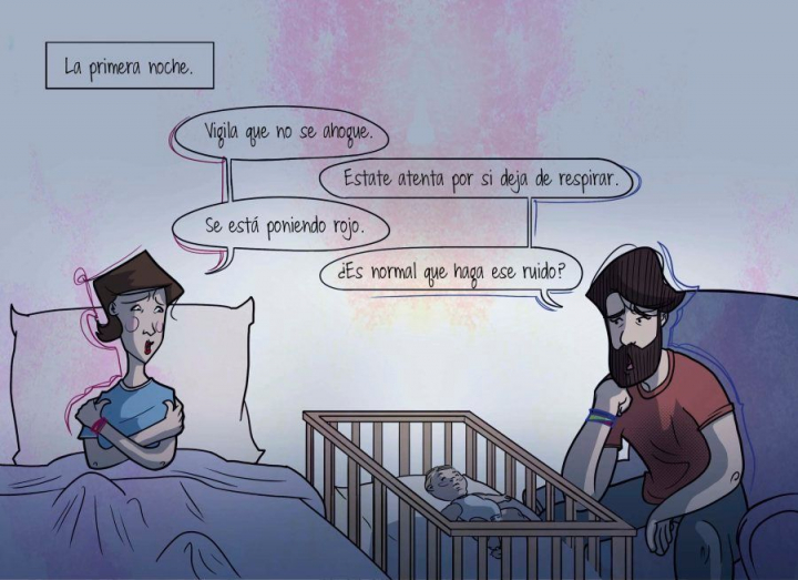 ¿Y ese ruido? ¿Por qué respira así? Está bien, ¿no? ¿Y esos espasmos? Sí, las primeras semanas, las noches son como un documental de La 2. Observar cada uno de los movimientos de tu hijo se convierte en una rutina constante, con las preocupaciones que eso conlleva. "Las primeras noches no pegamos ojo", cuenta Prádanos, quien recalca que durante ese tiempo se obsesionaban con las locuras de agarrarse al pecho o de si respiraba bien o no.