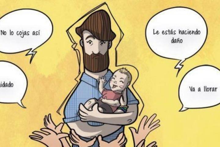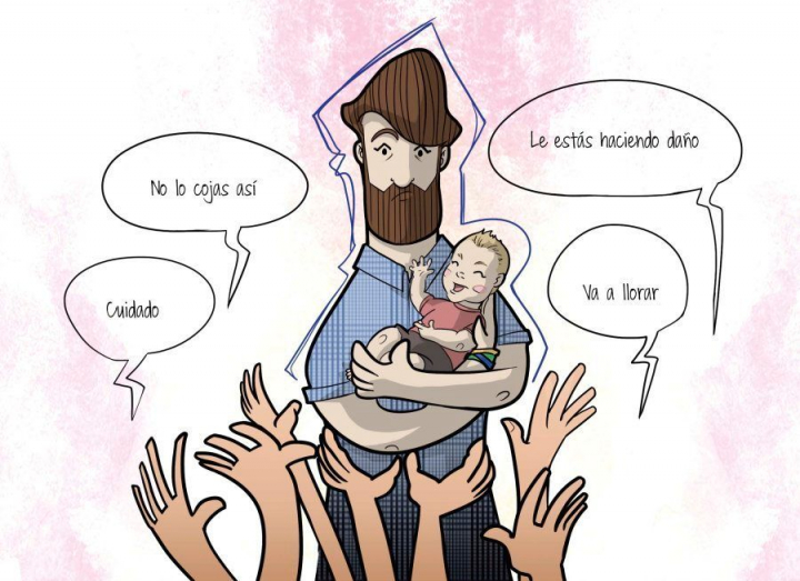 Si necesitas que la gente empiece a hablarte y comentarte lo que tienes que hacer o que te haga entrar en pánico solo tienes que coger al bebé en brazos. Seguro que los gritos de alerta de a ver si le haces daño o si eres tan malo cogiendo a tu hijo que se te cae al suelo se repiten constantemente. "Hay que intentar que no te invadan los consejos que a veces son ataques", señala el autor, que asegura que muchas veces les dieron métodos antiguos. "Hay que estar preparado mentalmente para no ponerte nervioso y que los comentarios no te arrastren directamente", añade.