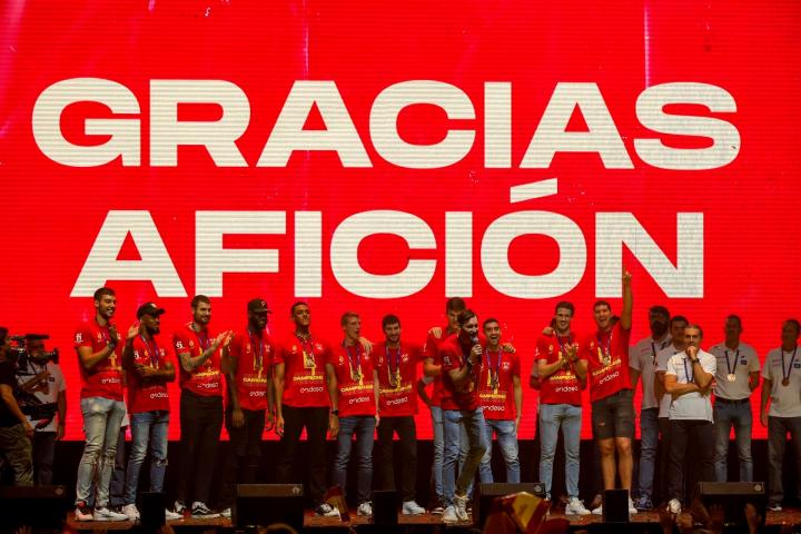 Jaime Fernández resaltó lo que ha sido “una locura de verano”, Darío Brizuela no escondió que tiene compañeros a “amigos para toda la vida” y Sebas Saiz, el que menos participación tuvo en el torneo, manifestó que son campeones de Europa “cuando la gente no creía en ello”. El ‘Sweet Caroline’ de Neil Diamond fue el encargado de cerrar la fiesta en el WiZink Center.