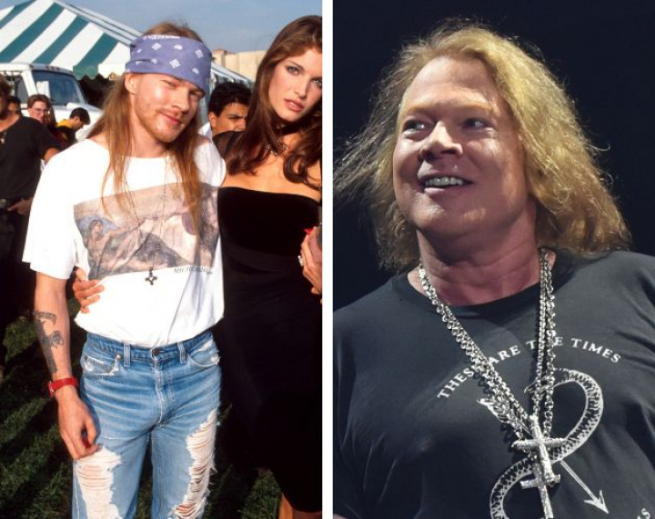 Poco queda del joven roquero de melena rubia lacia que subía la temperatura en el vídeo de November Rain junto a la supermodelo Stephanie Seymour, su pareja en aquel entonces. Después de un tiempo alejado de los escenarios, Axl Rose reapareció con una imagen totalmente distinta, prácticamente irreconocible, en un esfuerzo por retrasar el reloj y conservar su rostro aniñado. El resultado parece más bien el de la típica señora inglesa que veranea en Mallorca.