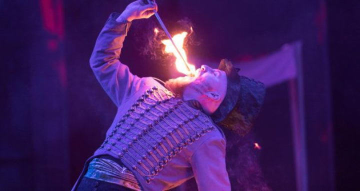 En este caso, la propuesta dramatúrgica son dos niños, Marco y Pili, que rodarán una película amateur sobre los viajes de Marco Polo. Una excusa que permite, a estos dos maestros de ceremonia algo payasos, llevar a sus espectadores desde Madrid hasta Mongolia. Viaje en el que se verá, entre otros, un hermoso trabajo de barra, fenomenalmente ejecutado. Un número de malabarismos con pelotas fluorescentes que asombra a la chiquillería y a sus padres. Un tragafuegos que tiene en pista una presencia entre hipster y dandy que ya querrían muchos actores y actrices, con el que realiza un número que derrocha sencillez, buen hacer y belleza.