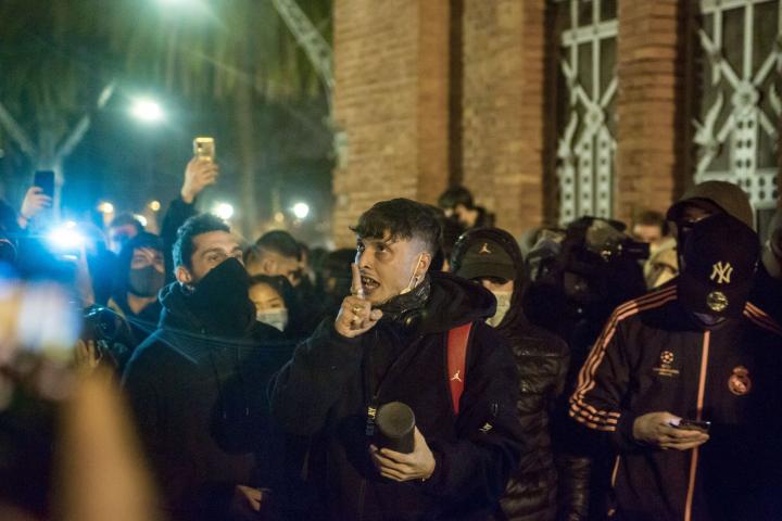 Al menos 700 personas se han concentrado a partir de las 19 horas en el Arc de Triomf de Barcelona ―la mayoría refugiados de la lluvia bajo el arco del monumento―, y han gritado lemas como ‘Catalunya antifeixista’ y ‘Libertad Pablo Hasél’, además de que algunos manifestantes han rapeado con un micrófono.