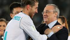 Era la voz de Sergio Ramos, que no ha jugado el partido por lesión pero sí estaba presente en el estadio Alfredo Di Stefano.