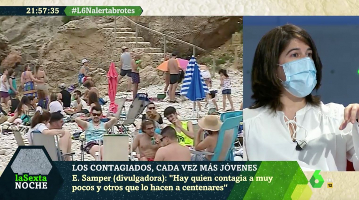 La divulgadora Esther Samper ha acudido por primera vez al programa LaSexta Noche, presentado por Iñaki López, donde cada sábado desde que comenzó la pandemia de coronavirus tiene lugar una mesa de científicos expertos en la materia.