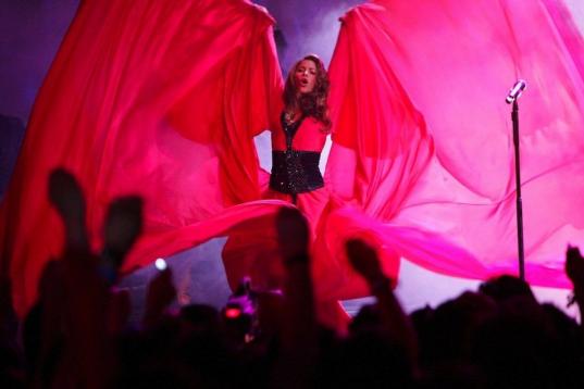 Chris Martin y su banda cantaron solos sobre el escenario, así como acompañados del artista alemán Herbert Groenemeyer. Sin embargo, el momento más chocante de la noche llegó cuando el grupo tocó tres temas con la cantante colombiana Shakira.