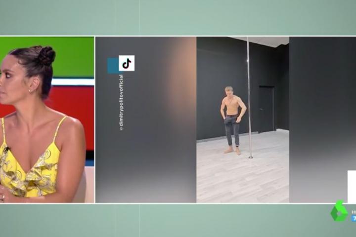 La colaboradora le presentaba al resto los vídeos de un trapecista que hacía cabriolas en una barra de pole dance. Pedroche admiraba el trabajo del fornido señor que demostraba sus habilidades cuando la imagen ha vuelto a plató.