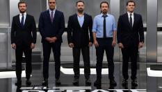 El presidente del Gobierno, Pedro Sánchez, y el líder del PP, Pablo Casado, chocan los codos para saludarse durante un reciente encuentro en La Moncloa. FERNANDO VILLAR via Getty Images