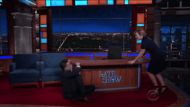 Pero allí estaban ella y Colbert para arreglarlo. En una divertidísima recreación de esa mítica escena de la película, ambos se levantaron de sus sillas, se colocaron en sus puestos y decidieron recrear la escena sobre la mesa del plató... con final feliz. Winslet incluso tiritó como su personaje. Y sí: por fin se produjo esa conversación: "¡Vamos, cariño! Aquí hay espacio para dos". Y Jack (bueno, Colbert), cupo en la tabla. Y fueron felices y todos comimos perdices.