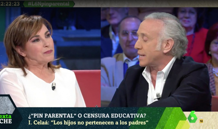 Eduardo Inda, director de OK Diario, estaba tratando de exponer sus argumentos a favor de esta medida y criticando al Gobierno por asegurar que “los hijos no pertenecen a los padres” y no dejaba de ser interrumpido por Angélica Rubio, directora de El Plural.