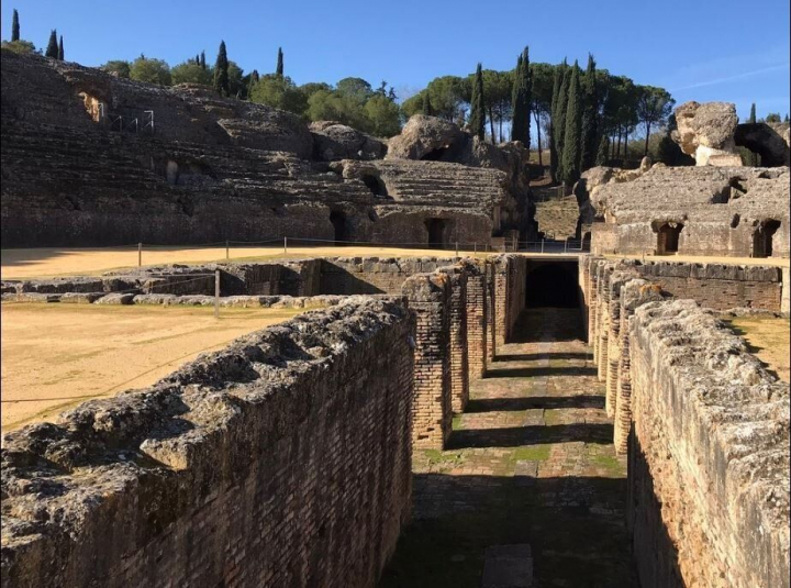 nfiteatro romanoCualquiera que visite la capital hispalense debería dejarse caer por esta ciudad romana que aún conserva parte de su estructura en el Bajo Guadalquivir. Datado del año 206 a.C., en su día fue uno de los enclaves más importantes del imperio, tanto a nivel económico como político, por ser cuna de emperadores como Trajano y Adriano y por su estratégica posición entre las rutas de explotación minera de la Sierra Norte de la actual Sevilla.